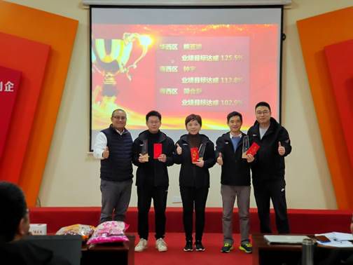 最后,由童记三利和营销中心副总经理——周明军先生为2020年业绩达成前十大客户及2020年业绩达成前三名业务人员进行颁奖,周总表示,希望2021年大家继续努力。