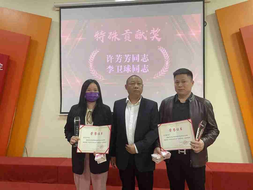 近日,对给公司做出突出贡献及表现优异的许芳芳和李卫球同志、进行表彰奖励。