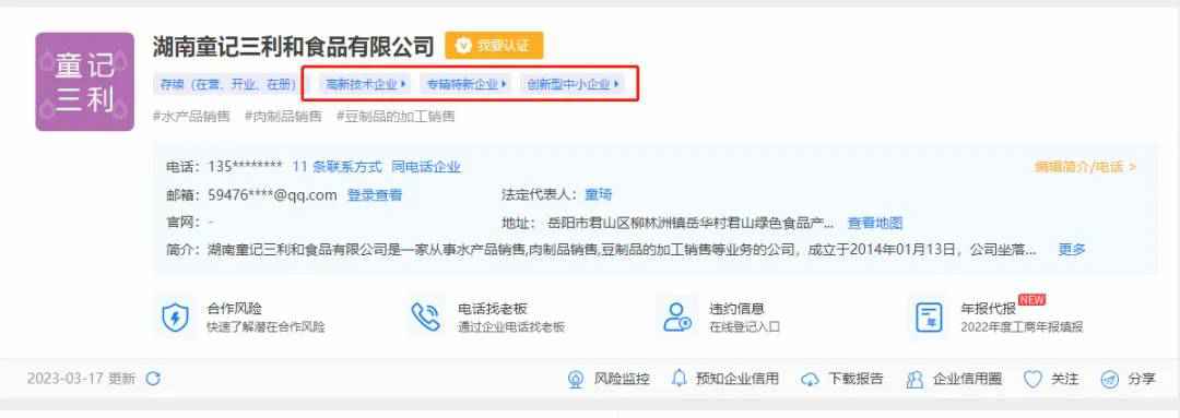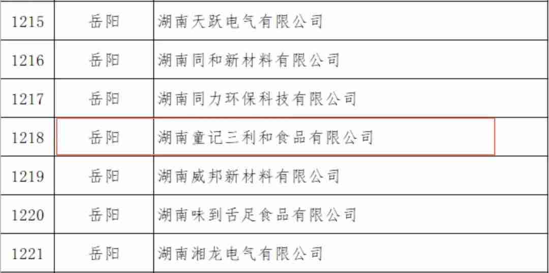 4月6日,湖南省童记三利和食品有限公式正式通过2023年湖南省专精特新中小企业认定。这是我司继获得“国家高新技术企业”、“创新型中小企业”“湖南省农业产业化龙头企业”等荣誉后,在公司发展道路上又取得了一项新的突破、获得了一项重要荣誉,同时这也代表国家相关部门对我公司的认可及肯定。