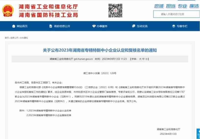 为响应党的二十大报告关于“支持专精特新企业发展”要求,依据湖南省工业与信息化厅《关于组织开展2023年湖南省专精特新中小企业申报和复核工作的通知》,公司对照《专精特新中小企业认定标准》认真审核、积极申报,并经岳阳市工业与信息化局审核推荐、湖南省工业与信息化厅专家评审和公示,三利和认定为湖南省专精特新中小企业。