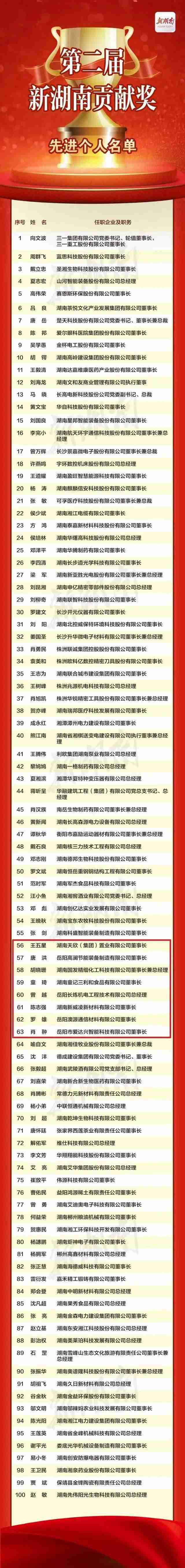 开,发布《关于表彰第二届新湖南贡献奖先进集体和先进个人的决定》。岳阳的昌德新材科技股份有限公司等4家民营企业获评“新湖南贡献奖先进集体”,王五星等8名民营企业家获评“新湖南贡献奖先进个人”。