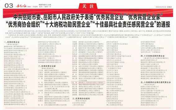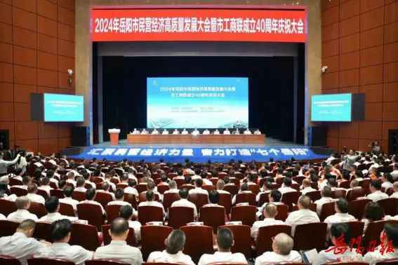 6月6日上午,2024年岳阳市民营经济高质量发展大会暨市工商联成立40周年庆祝大会召开。会议指出:近年来,岳阳市民营经济呈现出稳中有进、进中向好的良好局面,广大民营企业和民营企业家坚持以习近平经济思想为指导,以敢为人先的创新意识、锲而不舍的奋斗精神,奋发努力、艰苦创业、诚实守信、拼搏进取,成为推动岳阳经济高质量发展、维护社会和谐稳定的重要力量,在锚定“三高四新”美好蓝图,坚持“1376”总体思路,奋力打造“七个岳阳”中作出了积极贡献。