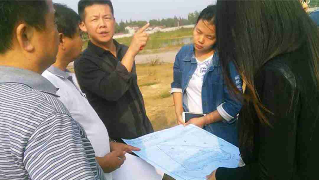 君山区规划局陈局长和项目部在现场办公水边放线年年有鱼