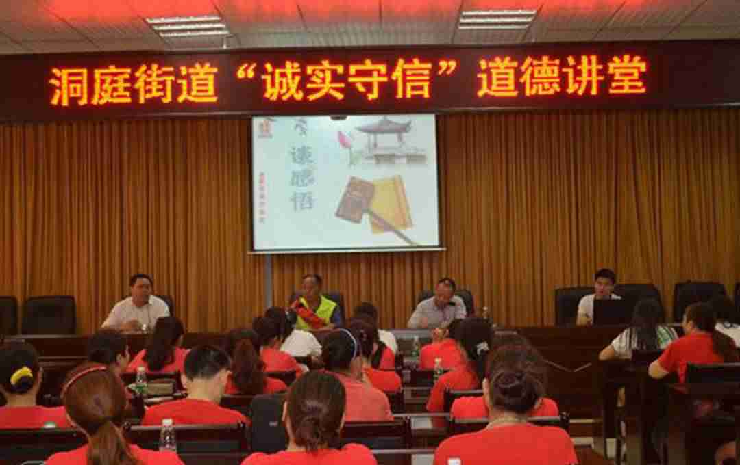 据悉,洞庭街道办事处以组织开展“道德讲堂”活动为契机,切实加强公民思想道德建设和文化建设,以“身边人讲身边事、身边事教身边人”的形式,创造“崇德尚善”的文化环境,营造“人人参与”的浓厚氛围,推动“知行合一”的道德实践。