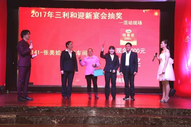 抽奖贺岁迎新春,劲舞欢歌乐起来。在幽默风趣、激情似火主持人的带动下,三利和家人们喜笑颜开,载歌载舞,尽情表演了舞蹈、独唱、小品、对唱、四人小合唱、诗朗诵,展示了三利和全体兄弟姐妹火热的工作,快乐的生活。开拓进取是你腾飞的翅膀,和谐家园谱写明天的乐意,喜庆的日子里,全体管理人员大声高歌属于我们自己的《三利和之歌》,抒发了开拓创新,团结奋进的创业激情和昂扬斗志!