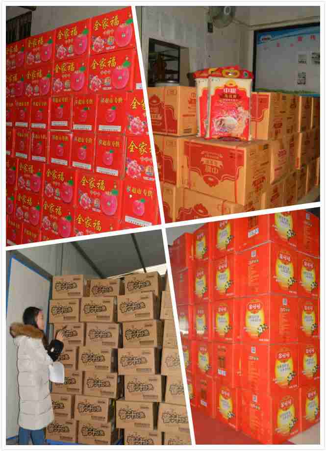 正所谓年年岁岁花相似,岁岁年年物不同。大米、食用油、水果、牛肉、三利和酱汁小鱼井然有序的排队在厂区里等待他们的主人带她们回家。