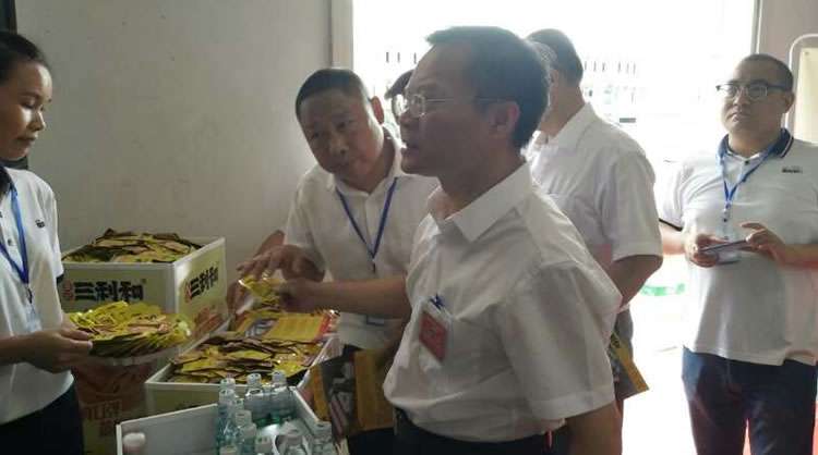 下车伊始,全国人大代表专题调研组径直来到公司展板前,仔细询问公司发展历程,董事长童琦先生进行了详细的介绍。湖南童记三利和食品有限公司成立于2007年,是一家专业从事鱼制品、肉制品、豆制品深加工的洞庭湖绿色食品企业,现有员工500多人,年产值2亿元,拥有湖南省著名商标“童记三利和”。2013年,在岳阳君山洞庭湖绿色食品产业园成功购地85亩,投资2亿元建设年产2万吨休闲食品项目,总建筑面积61815㎡,建成投产后年产值将突破10亿元,年创税收3000余万元,解决劳动力就业1200多人。项目分两期建设,第一期投资1亿元,建设标准化厂房、配套建筑、研发办公楼等27000余㎡,预计年产值可达4亿万元,目前一期工程已全部建成投产;第二期也将于两年内全部建成。